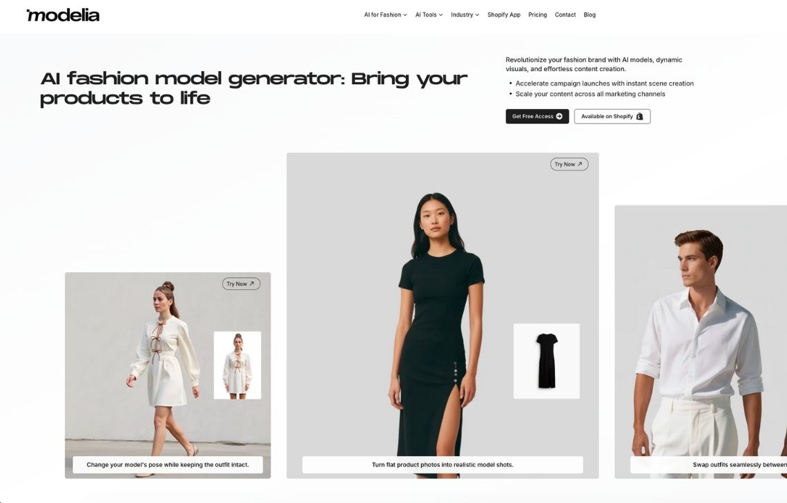 - Modelia: Shopify app with clear plan structure and credits; good “plug-in” choice for Shopify stores.