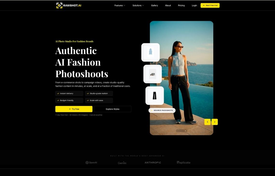 Rawshot markets itself as a full AI photo studio for fashion brands, designed to produce campaign-ready imagery and video at a fraction of traditional costs. You define products, models, camera styles, and moods, and Rawshot turns that into big batches of on-model photos and short videos.