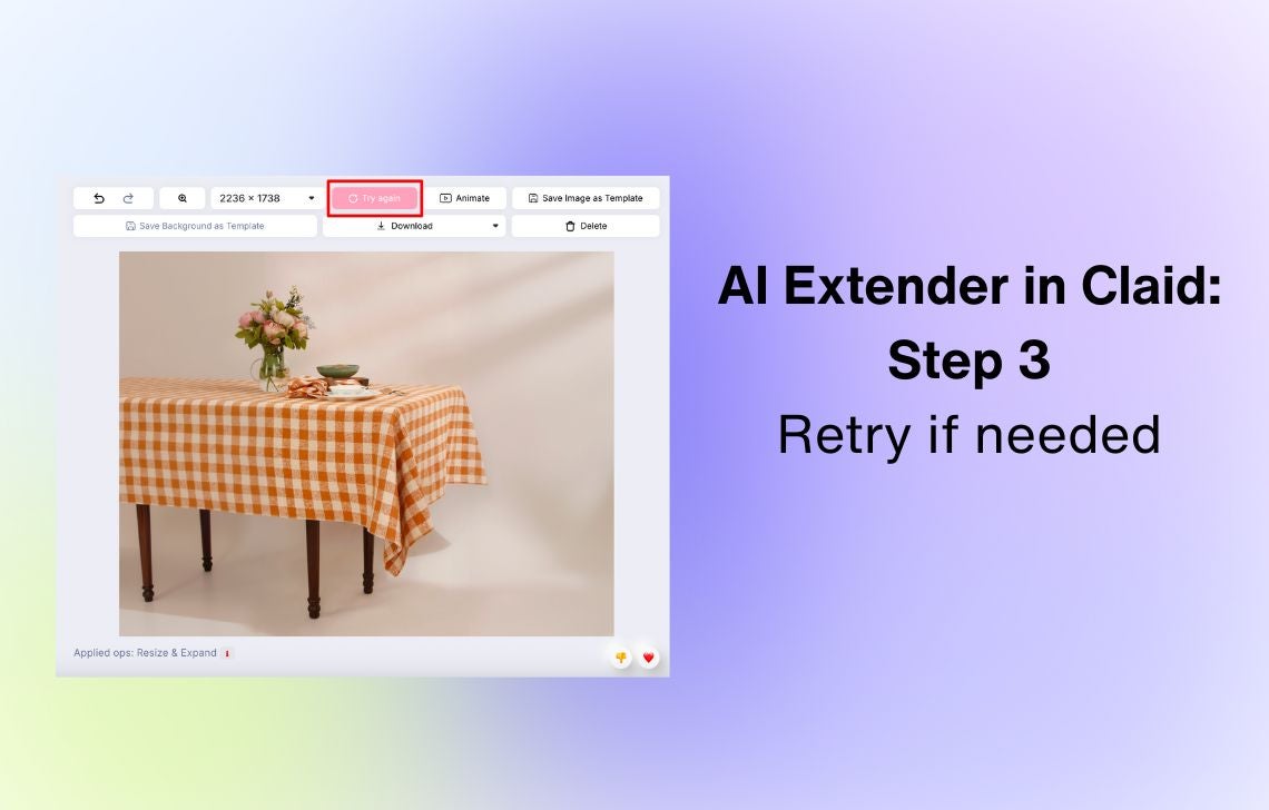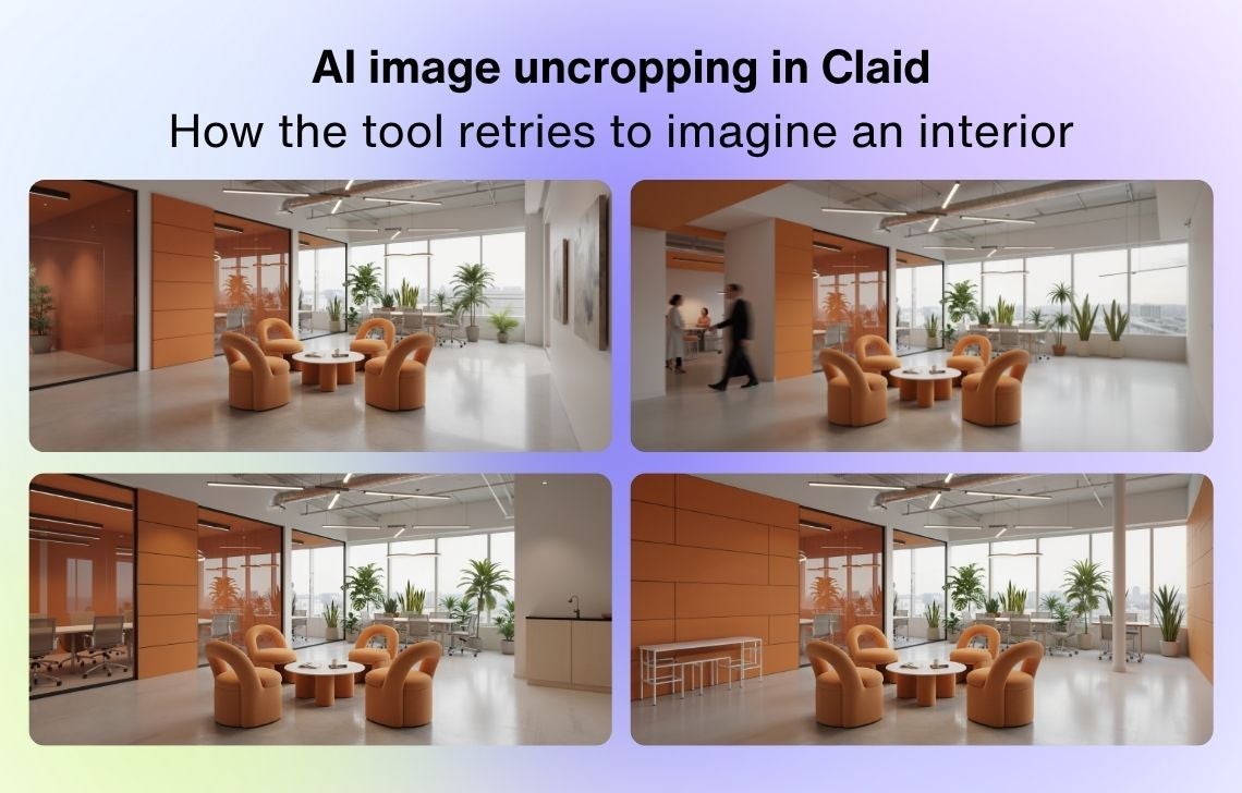 Claid’s image expander allows you to retry as many times as you want. For instance, you can generate different variations of an interior setting and choose the one that fits your product’s mood best.