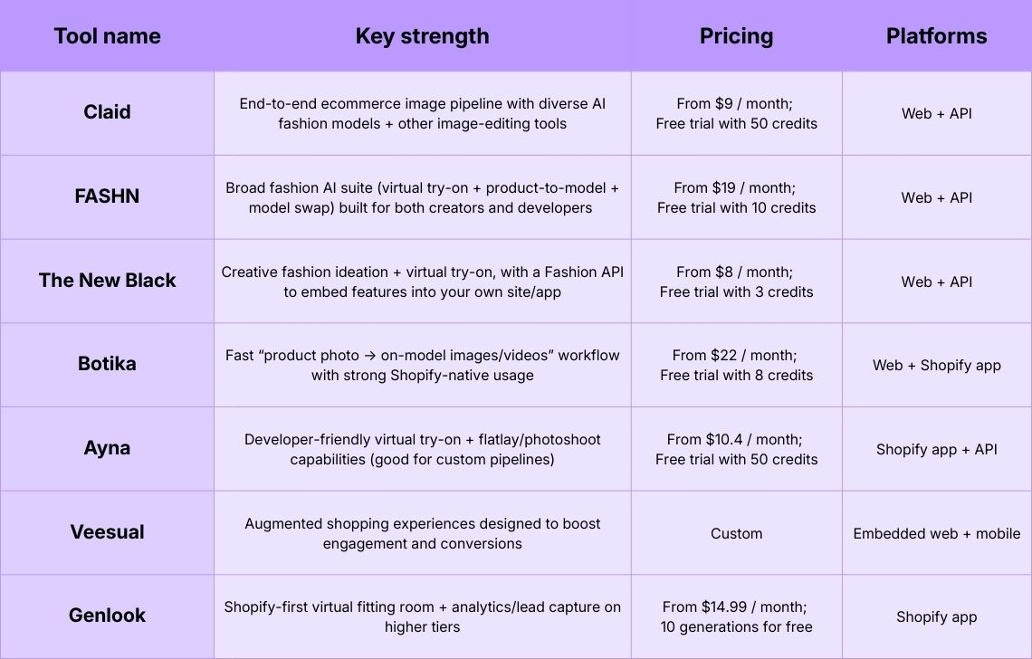 - FASHN is a good “creative studio” alternative when you need try-on-like flexibility and multiple generation modes.
